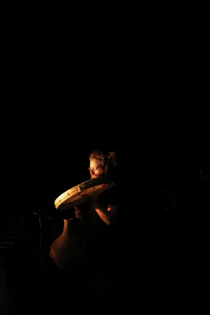 Ainsi, dans CroiTre, nous invitons consciemment le spectateur à prendre la place du méditant. L’interprète occupe celle du guide, librement inspiré par le personnage de Guardi Guedj dans Les Cavaliers, Joseph Kessel. Avec les musiciens, ils se retrouvent tantôt meneurs, tantôt entraînés par leur propre récit, et nous emportent dans un dialogue entre sérénité et frénésie.